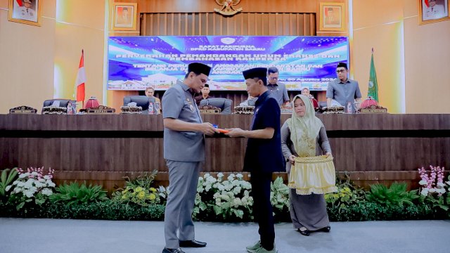 MEDIATA.ID — Bupati Barru Dr.(H.C).Ir.H.Suardi Saleh, M.Si serahkan Rancangan Peraturan Daerah (Ranperda) Perubahan Anggaran Pendapatan dan Belanja Daerah (APBD) Kabupaten Barru Tahun Anggaran (TA) 2024 di Ruang Rapat DPRD Kabupaten Barru pada Jum’at (30/08/2024).