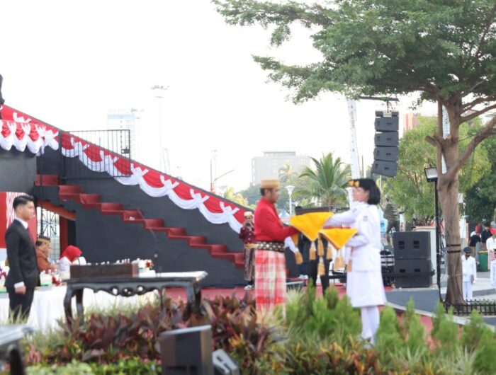 MEDIATA.ID — Pj Sekda Kota Makassar, Firman Hamid Pagarra menerima secara langsung peti yang berisi duplikat bendera pusaka merah putih dan salinan teks proklamasi.