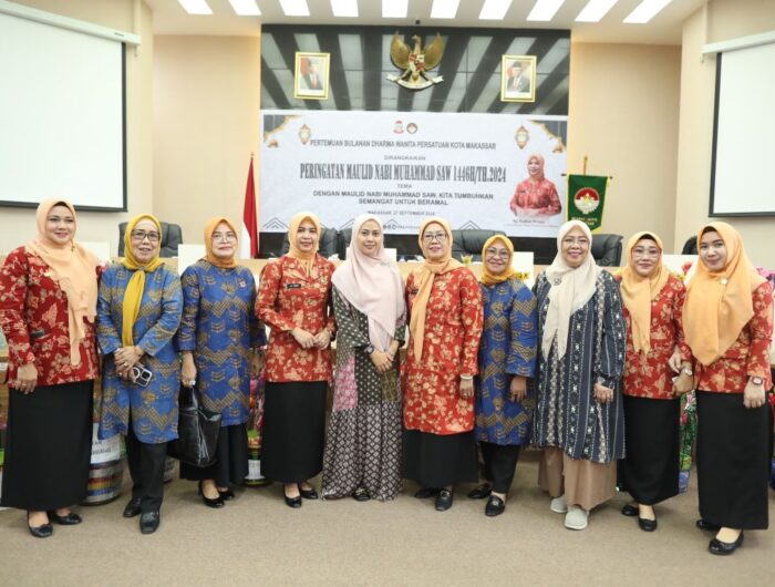 MEDIATA.ID — Pjs Ketua TP PKK Kota Makassar, Andi Tenri Anna Marzuki, hadiri Maulid Nabi Muhammad SAW yang digelar oleh Dharma wanita Persatuan (DWP) Kota Makassar di Ruang Sipakatau Balaikota, Jumat (27/09/2024).