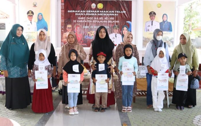 MEDIATA.ID – – Dalam rangka ikut serta memeriahkan Hari Jadi Sulawesi Selatan ke-355, Pemerintah Kabupaten Kepulauan Selayar melalui Dinas Sosial melaksanakan gerakan gemar makan telur dan lomba mewarnai bagi anak dan keluarga data terpadu Kesejahteraan Sosial (DTKS), di Pendopo Dekranasda, Rabu (9/10/2024).