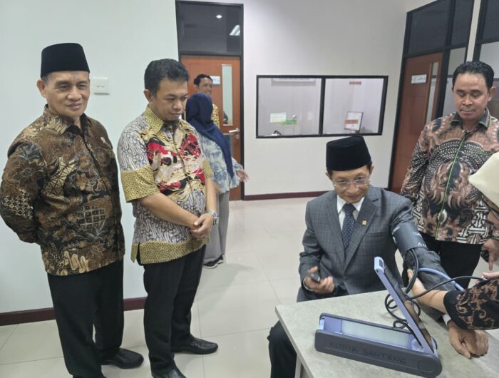 Selain menyapa dan memberikan motivasi kerja kepada staf dikantor kementrian,menag Juga menyempatkan diri memeriksa kesehatan di salah satu bagian di kantor kementrian agama.