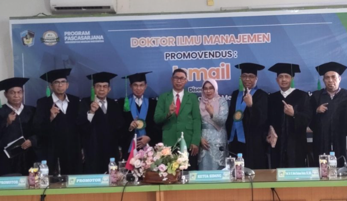 MEDIATA.ID -Mantan Dekan Fakultas Ekonomi dan Bisnis (FEB) Universitas Muhammadiyah (Unismuh) Makassar, Ismail Rasulong, resmi meraih gelar doktor Ilmu Manajemen dari Program Pascasarjana Universitas Muslim Indonesia (UMI). Ismail dinyatakan lulus dengan predikat sangat memuaskan pada ujian promosi doktor yang digelar pada Kamis (7/2/2025).
