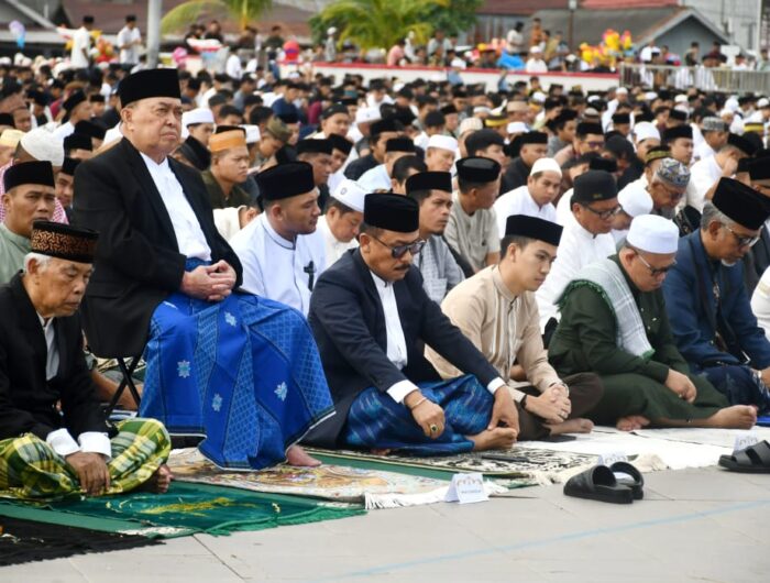 Setelah pelaksanaan shalat Idul Fitri, Wagub Salim S Mengga menyampaikan makna bulan suci ramadan yang telah dijalankan. “Makna ramadan tahun ini, kita mamperbaharui diri menjadi manusia yang lebih baik, lebih iklhas, lebih jujur, lebih memiliki semangat untuk meningkatkan kinerja untuk kepentingan masyarakat,” kata Wagub Salim S Mengga.