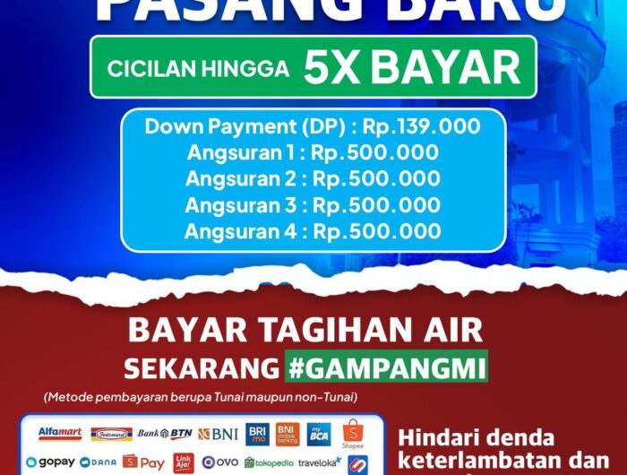 MEDIATA.ID — Makassar, 14 Juni 2025 – Perusahaan Daerah Air Minum (PDAM) Kota Makassar kembali menunjukkan komitmennya dalam memperluas jangkauan layanan air bersih dengan meluncurkan program promo pemasangan sambungan baru yang sangat terjangkau. Melalui inisiatif ini, calon pelanggan dapat menikmati kemudahan pembayaran dengan sistem cicilan hingga lima kali.