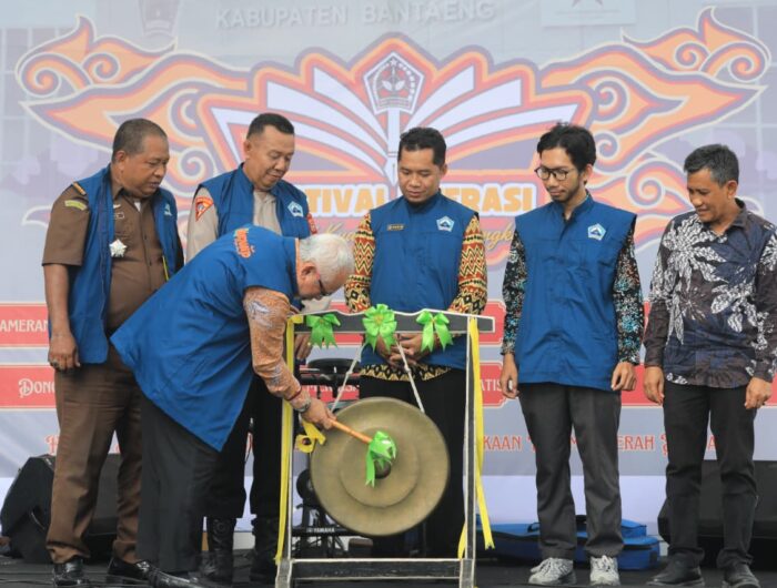 MEDIATA.ID — Ditandai dengan pemukulan Gong, Wakil Bupati Bantaeng, H. Sahabuddin, menghadiri sekaligus membuka secara resmi kegiatan Library Pop Up Fest, Festival Literasi yang digelar di Halaman Perpustakaan umum Daerah buttatoa dinas perpustakaan dan kearsipan Kabupaten Bantaeng, Kamis, 23 Oktober 2025.