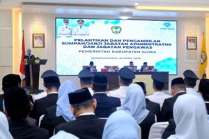 MEDIATA.ID — Pemerintah Kabupaten Gowa resmi melantik 124 pejabat administrator (Eselon III) dan pengawas (Eselon IV) di Baruga Tinggimae, Rumah Jabatan Bupati Gowa, Kamis (23/4). Agenda ini bertujuan untuk memperkuat birokrasi dan meningkatkan efektivitas pelayanan publik.