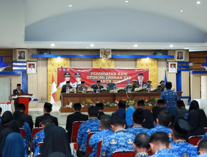 Dalam kesempatan tersebut, Sekretaris Daerah membacakan sambutan seragam Menteri Dalam Negeri Muhammad Tito Karnavian dalam rangka Peringatan Hari Otonomi Daerah ke-XXX Tahun 2026. Dalam sambutannya, Mendagri menyampaikan apresiasi kepada seluruh jajaran pemerintah daerah, tokoh masyarakat, akademisi, insan pers, serta seluruh elemen bangsa yang telah berkontribusi dalam menyukseskan pelaksanaan otonomi daerah di Indonesia.
