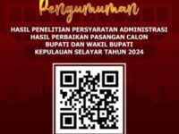 MEDIATA.ID – – KPU Kepulauan Selayar mengeluarkan pengumuman Hasil Penelitian Persyaratan Administrasi Hasil Perbaikan Pasangan […]